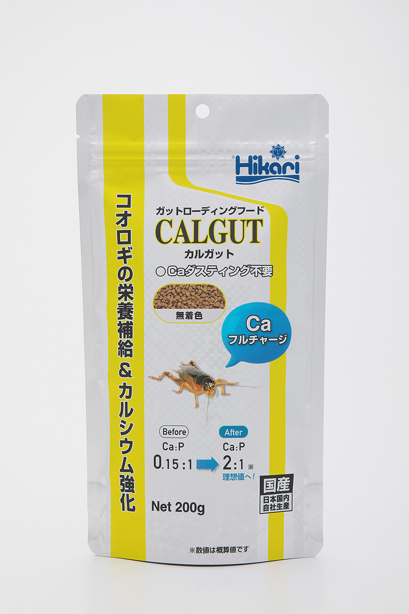 - 爬虫類に最適なカルシウム含有比へコオロギのカルシウム:リン比は、約0.15:1とCaが不足しています。カルガットを与えるだけで、理想的な比率である2:1以上に簡単に補正できます。デュビアやミルワームにも使用でき、同様に2:1以上に調整可能です。