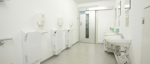 清潔区に入るためには、必ずこのサニタリールームを通ります。