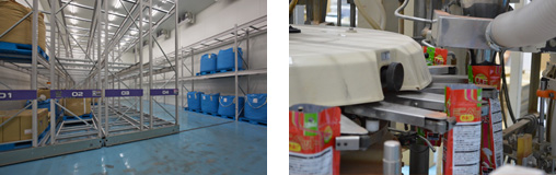ここでは主にプラスチックパック形態の製品の充填包装を行っています。