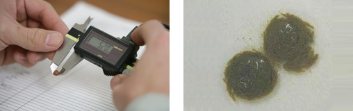 安定した品質の製品を供給し続けるために、全ての製品に規格を設けています。「大きさ」や「かさ比重」などの物性検査と「色」や「におい」といった外観検査も実施しています。