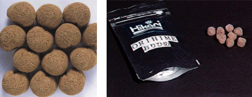 メダカの宇宙食「Hikariおりひめ」と同様の技術を活用したエサを観賞魚用として販売しています。大型肉食魚のエサ「ひかりクレストカーニバル」や「ひかりクレストキャット」が、その代表例です。口当たりに配慮した柔らかさと水を汚さないしっかりとした性質を兼ね備えたスポンジ構造がマニアの方のご支持を頂き、現在もご好評頂いています。